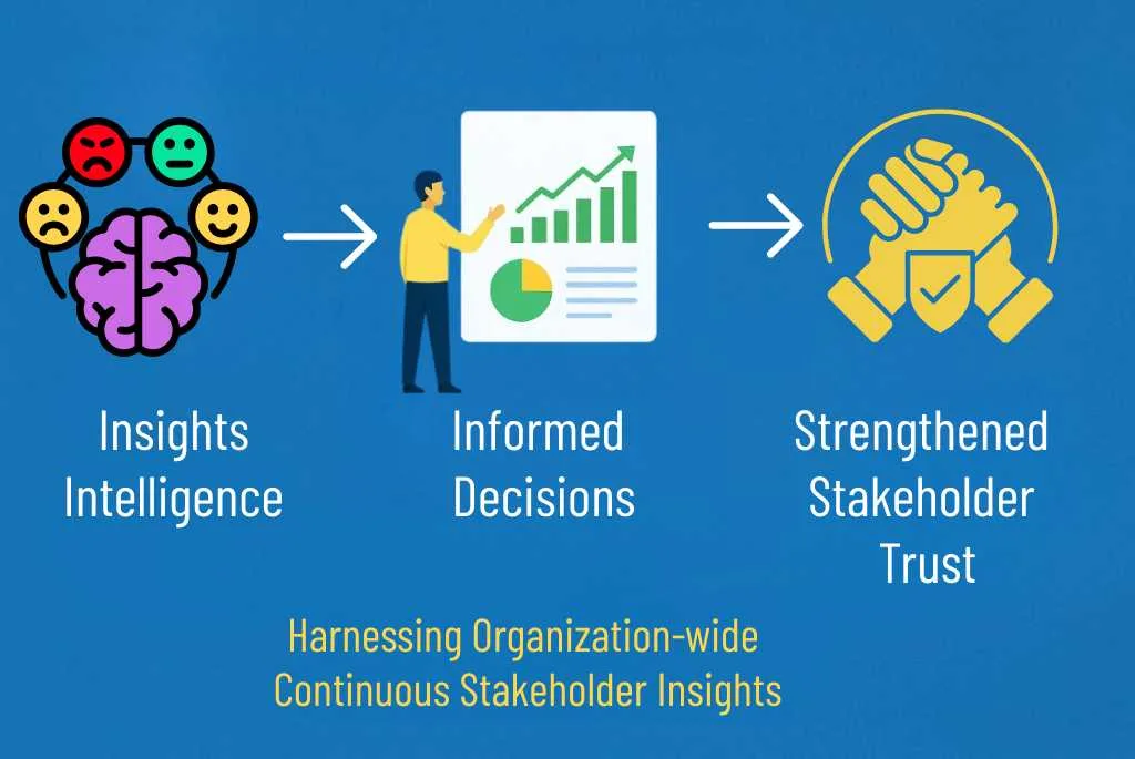 Stakeholders continuously send key signals—opinions, behaviors, perceptions—that leaders must harness in real-time. This is the powerful Stakeholder Insights Intelligence.